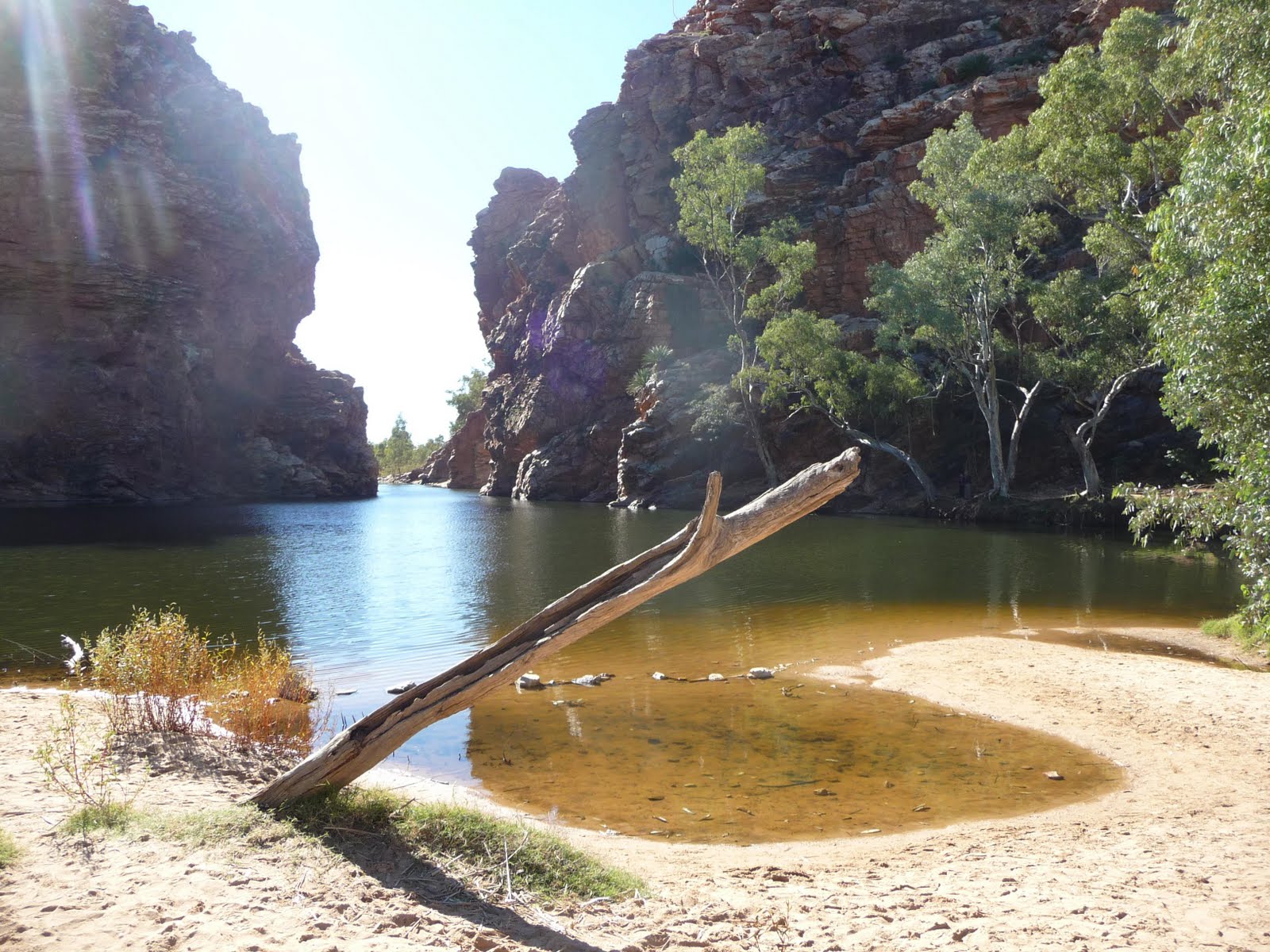 le lendemain, on est aller au East macdonnell Ranges… Les balades sont bcp plus courtes mais on a bien rigoler :D En effet, sur le chemin, il a fallu empreinter de la dirt Road et regarder plutôt ce qu’ on a du traverser :D